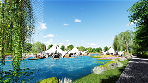联动政府打造的湿地公园,将项目临坝的边缘打造成湿地风光带,整体形成一个更大、风光更美的大湿地环境,成为整个项目的外围景观体系。