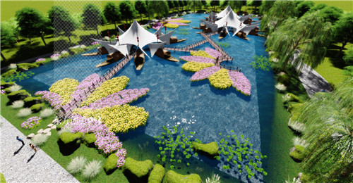 本项目位于安徽巢湖,总规划面积约6000亩。在巢湖市重点打造巢湖半岛国家农业公园的背景下,项目组通过分析发现,巢湖作为五大淡水湖之一,环巢湖旅游产品虽然丰富,但缺乏能够支撑五大淡水湖概念的带有巢湖水乡特色的农业旅游项目。在我院“三代农业”理论体系的支撑下,通过对巢湖民歌这一非遗文化的创意延展,在农业种植艺术化工程(创意种植体系、农田艺术体系、精品种植体系)的基础上,导入“禅意花海+禅主题民宿”这一全新的宗教旅游形式,创新性提出打造“卉盟天下”这一主题形象,并对“卉盟”进行创意延展,构建“五湖水卉”、“国花卉盟”、“趣味森林”“99间半禅修精舍”等产品体系。
