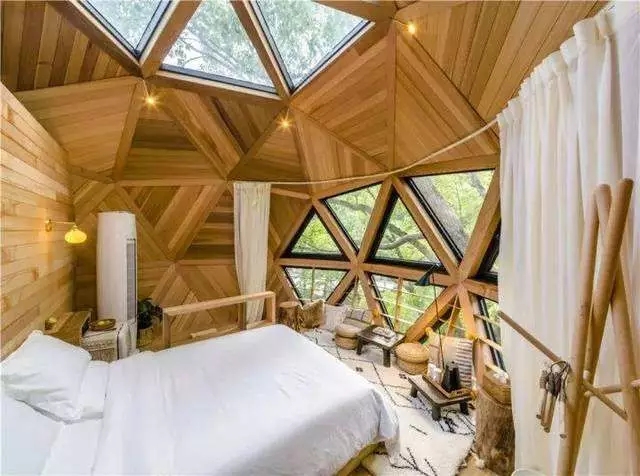 住上树上的穹顶屋,完全不用担心安全。三角形组合而成的拱形建筑可以说是人们认知中“最坚固的几何构形”不光能支撑很大的负重,而且防火抗震性能远超传统房屋。