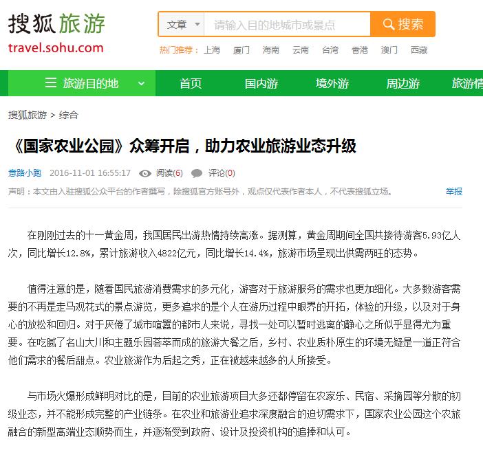《国家农业公园》众筹开启 助力农业旅游业态升级 |